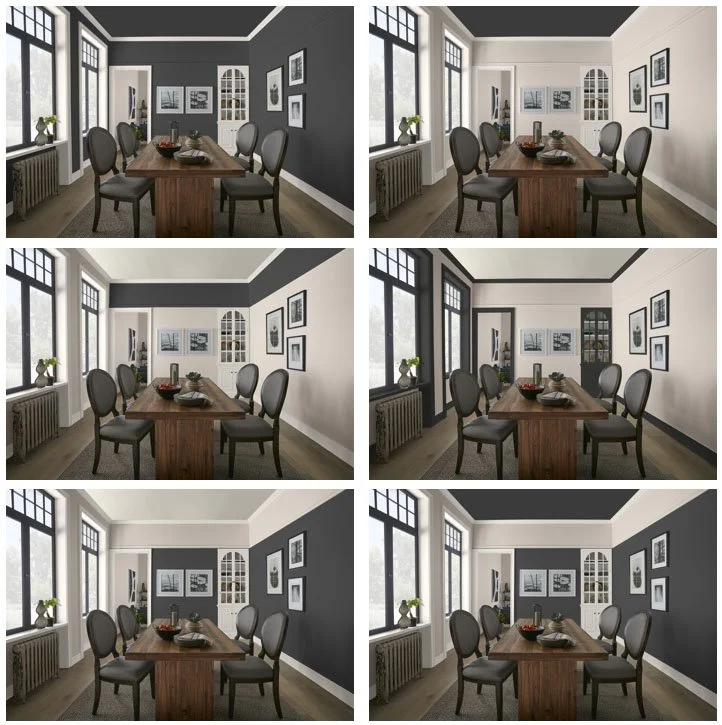 Another thing to consider is the proportion and scale of your colours. Depending on the types of colours you choose and the ratio of them in a space, you can actually change your perception of the space's shape and size. For example, using a dark colour on the ceiling can make it feel lower than it actually is.